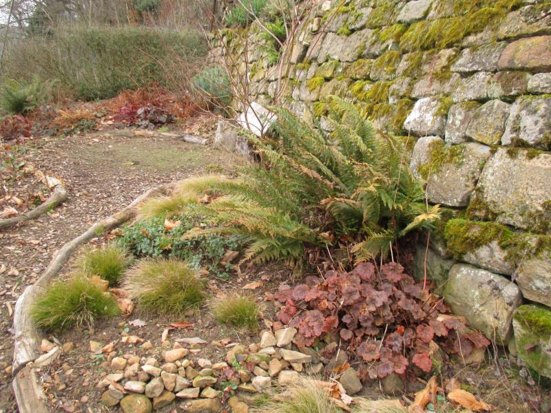 Heuchera und Farn bei der Kleeulme sehen noch ganz nett aus.