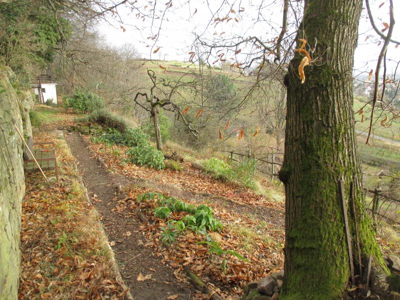 Im Waldrandbeet machen die Helleboren argutifolius ganz dicke Knospen.
