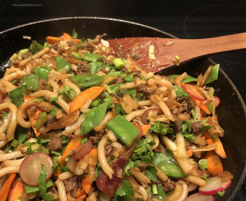 Gestern gab es Fischpfanne mit Weißwein-Mango-Sahne-Soße und Wildreis/Basmati-Mischung, heute gab es nur Joghurt und demnächst eine Pizza vom Lieblings-Pizzabäcker.