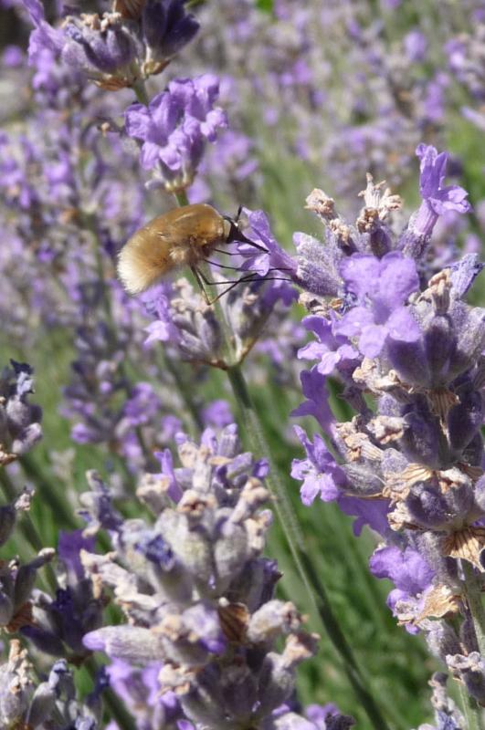 Vielleicht solltest Du einmal darüber nachdenken mit den Tieren in Deinem Garten etwas verständnisvoller und intelligenter umzugehen. Auf dem Foto sieht man zwar gar nichts aber vermutlich handelt es sich um ein Männchen von Anthidium manicatum, der Gartenwollbiene. Zu deren ganz normalem Verhalten gehört die territoriale Bewachung der Pollenpflanzen ihrer Weibchen. So ein interessantes Verhalten einer kleinen Biene sollte eigentlich Erstaunen und Ehrfurcht beim Betrachter auslösen, oder?