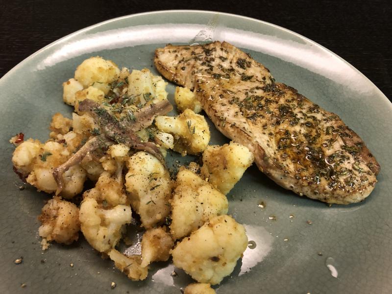 Heute gab es Blumenkohl nach diesem Rezept und dazu ein Schweineschnitzel mit Rosmarin. Thomas hat die "Schuhsohle" nicht mal aufgegessen. >:( Mir hat es trotzdem geschmeckt. Ein Kalbsschnitzel ist natürlich etwas anderes. Aber der Blumenkohl war lecker. ;)