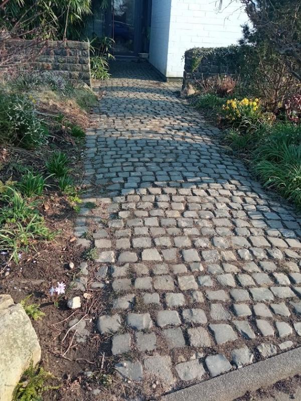 ich habe heute eine meiner absoluten Hasstätigkeiten ausgeübt. Das Abflämmen der gepflasterten Flächen. Die sind tatsächlich nicht versiegelt und mit ihren breiten spalten zwischen den einzelnen Steinen anfällig für Bewuchs jeder Art. Als wir das Haus übernommen haben, waren die großen Beetflächen kaum von den Pflasterungen zu unterscheiden... alles gleich bewachsen. Und ich mag es schon ganz gerne, wenn ich auf den ersten Blick erkennen kann, wo das Beet anfängt und der Weg aufhört... Da ich aber nicht gerne tagelang in Steinritzen rumkratze, habe ich mich fürs Abflammen entschieden... drei mal pro Saison muss reichen... für mehr reicht mein Perfektionismus nicht.
