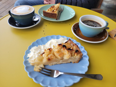 Sehr nett dort und eine wirklich herzliche Atmosphäre! Die Früh- und Spätstückzeit - zu der jeweils eine Anmeldung erbeten ist- war gerade vorbei. Nachmittags kann man sich einfach einen Platz wählen und Kuchen an der Theke aussuchen.