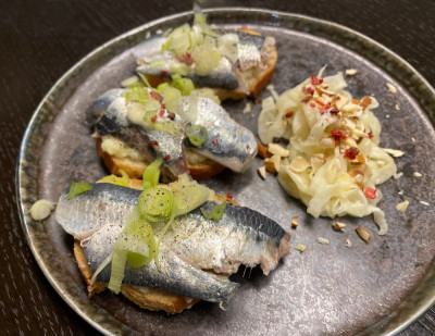 Ich habe sie 20 Minuten gebeizt (Wasser, Weißweinessig, Salz und Zucker) und auf geröstetem Brot und Fenchelpüree angerichtet, dazu gab es marinierten Fenchel.