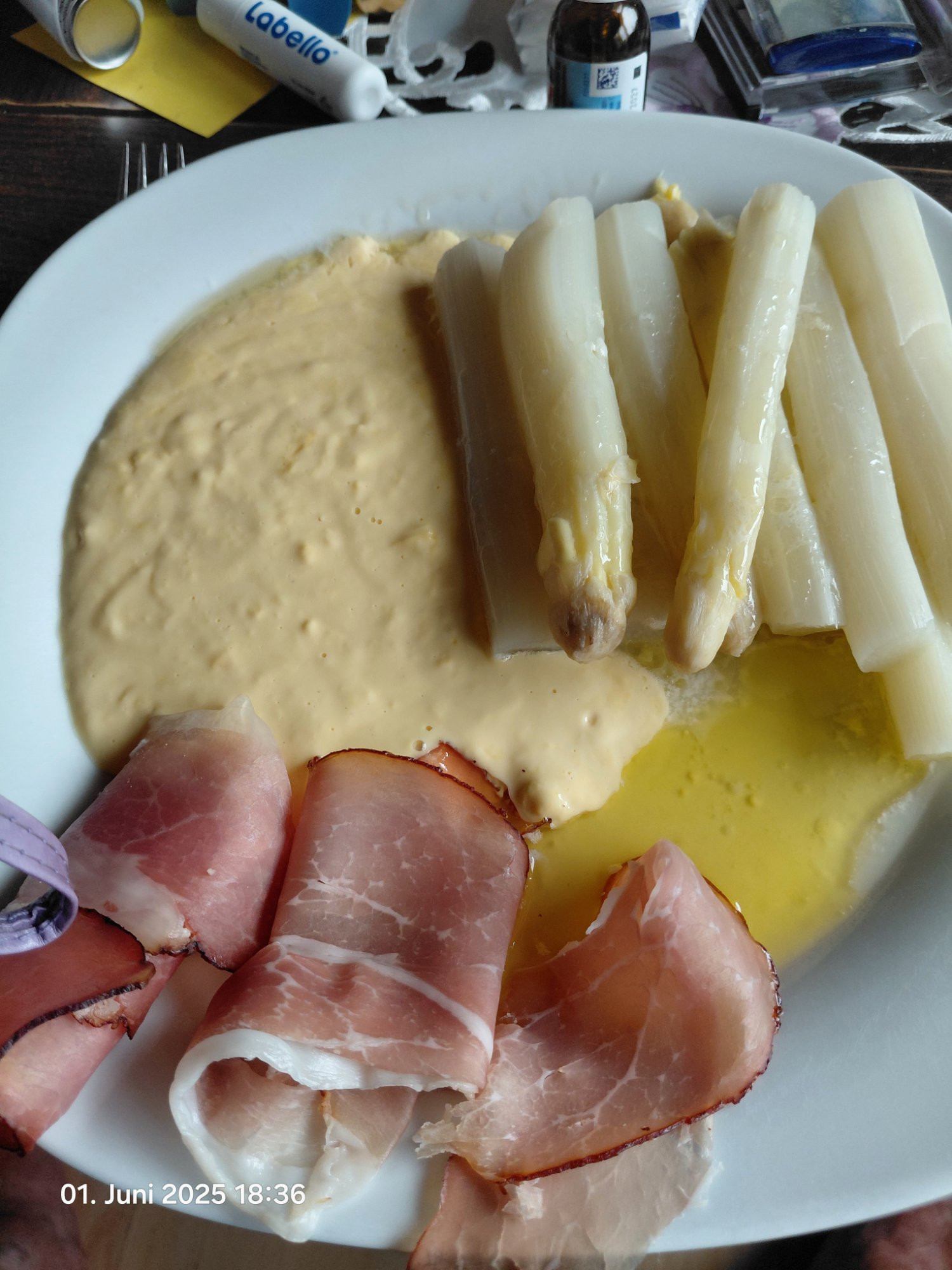 Wir waren gestern mit Freunden essen. Und da ich noch an Zwerggartens Spargelrisotto denken mußte und es eins auf der Karte gab, habe ich das gegessen. Heute wird es Spaghetti Vongole geben und morgen ein, ich glaube aus 10 Einzelpositionen bestehendes, Geburtstagsessen für meinen fischaffinen Neffen. Ich habe heute schon einiges vorbereitet und freue mich darauf.