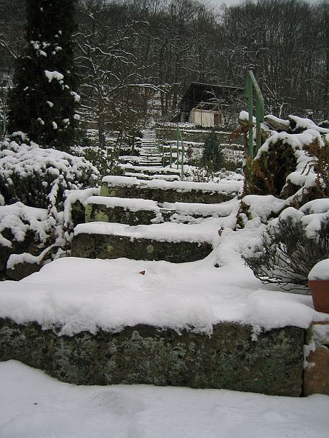 So übersichtlich präsentiert sich die Treppe nur im Winter. Und nur bei Schnee wird die Struktur deutlich. Leider dachte ich erst nach dem Wiederherabsteigen an das Foto.