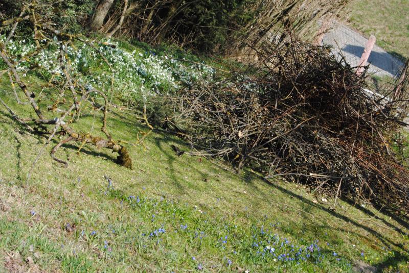 Bei mir ist dieses namenlose große (30cm) Galanthus plicatus immer das letzte Schneeglöckchen der Saison, Corydalis solida 'Blue Giant' und seine Kinderschar haben gerade die richtige Größe.