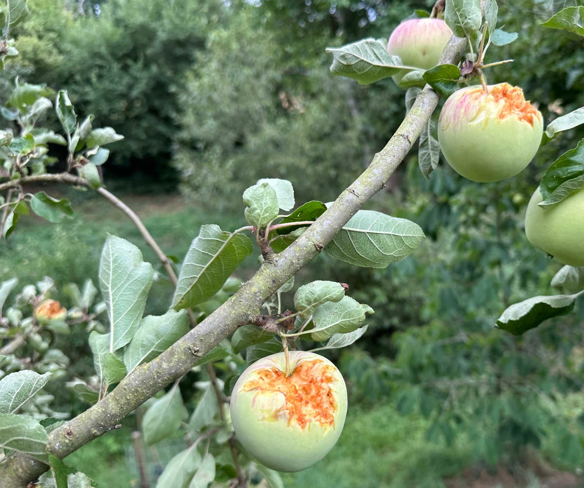 Auch ohne Alexandersittiche sind die Frühäpfel zerstört worden. Hier "Piros":