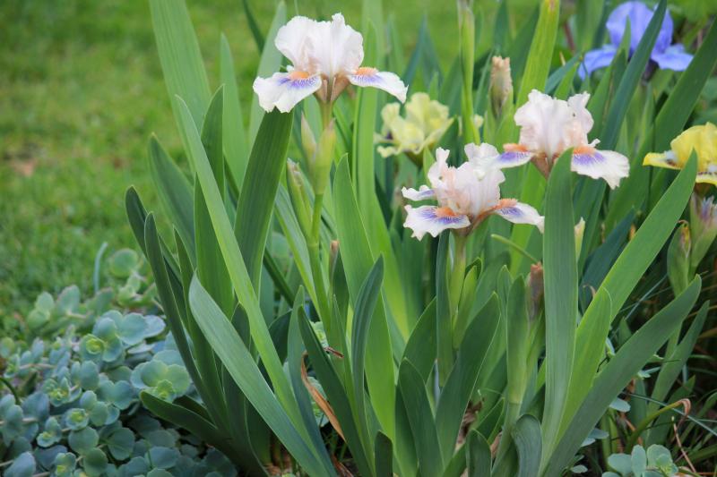 hier mal Iris IB 'Morgendämmerung' mit Veronica gentianoides 'Pallida'. Ich muss meine Iris Bilder mal nach Begleitpflanzen sichten.