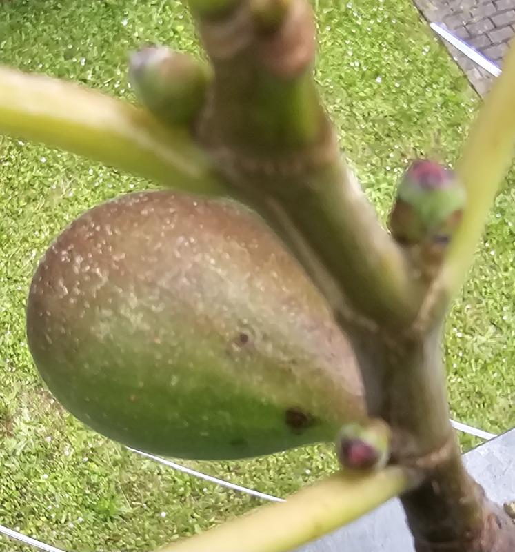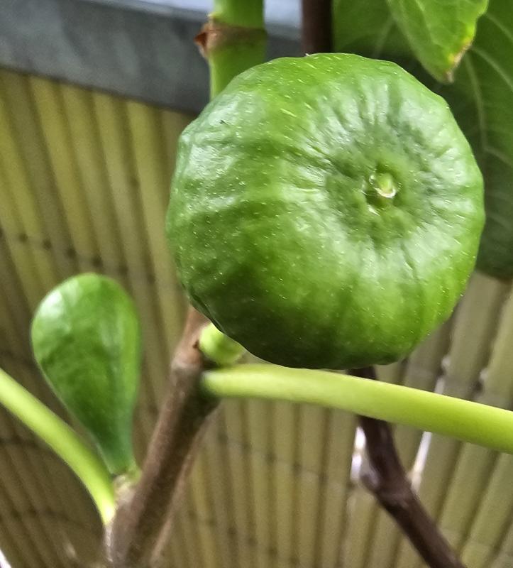 Little Miss Figgy hat 2 Brebas dran und viele Herbstfeigen in Erbsengröße oder kleiner formen sich gerade.