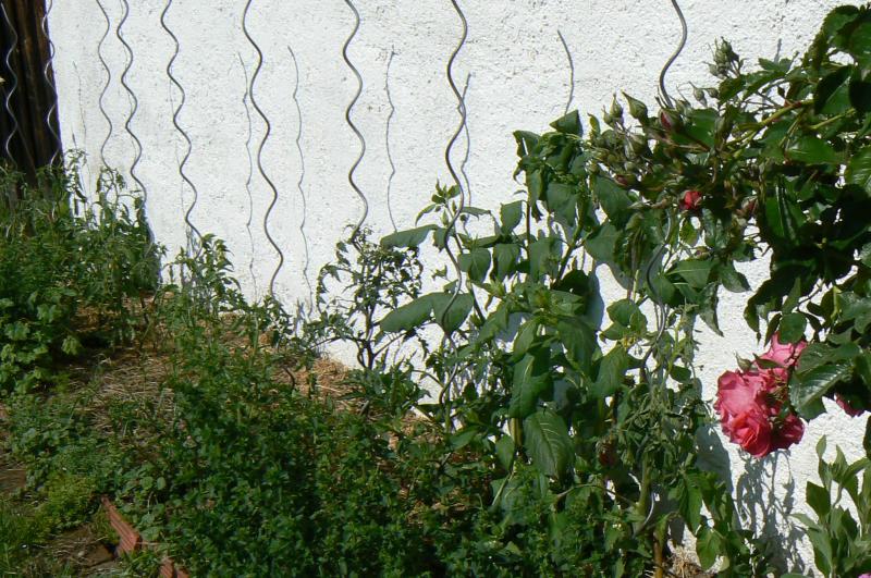Die Tomaten am alten Kuhstall kommen auch gut. Dort wächst seit ein paar Jahren eine Tollkirsche. Letztes Jahr waren die Tomaten, die m.o.w. von der Tollkirsche umarmt wurden auffällig kräftiger als alle anderen. Mal sehen, ob das dieses Jahr wieder so ist.
