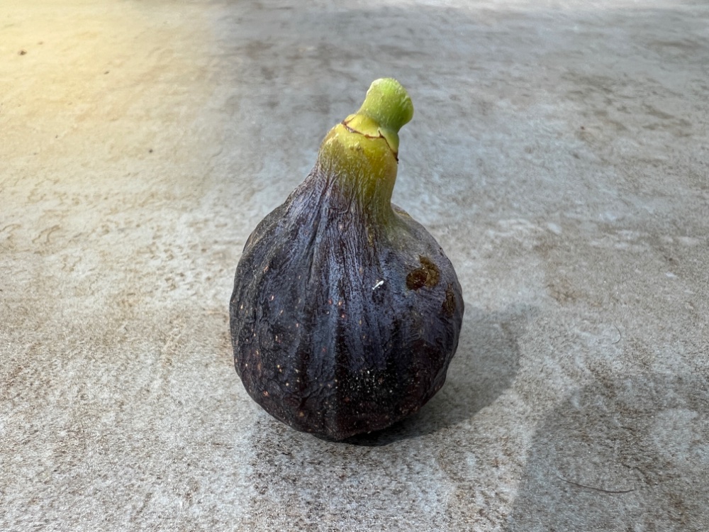 Gerade eben die erste Herbstfeige genascht. Hardy Chicago in Topf.