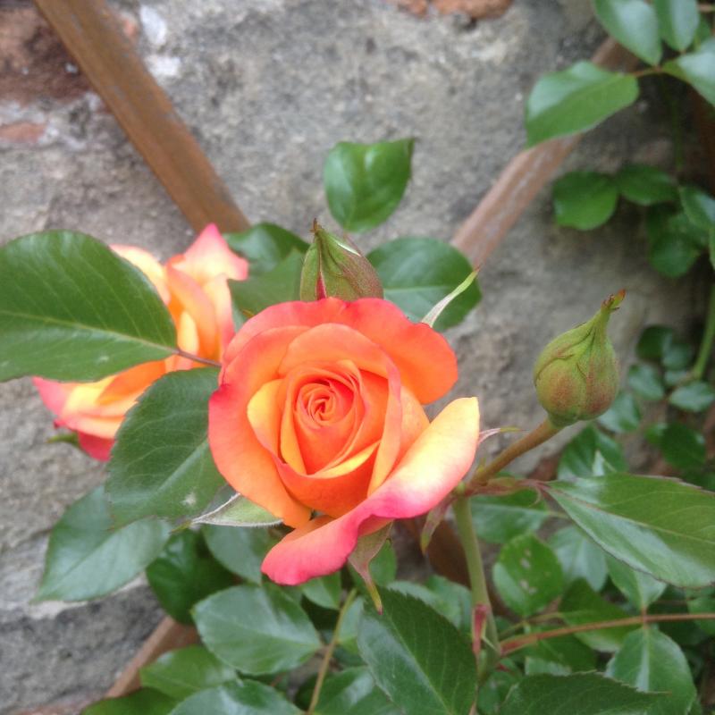 Wie schnell die Plastikschilder zerbröseln! Aus dem zusammengesetzten Puzzle des verwitterten Schildchens konnte ich nur mehr erkennen, dass es eine courtyard-Rose ist. Sie klettert und hat die trockenen Sommer problemlos überlebt. Weiß jemand, welche Sorte das sein könnte?