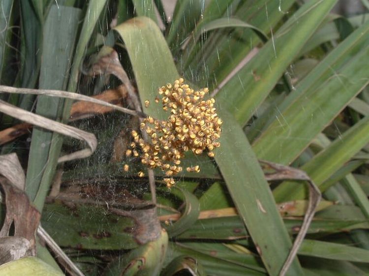 Und hier ist noch ein Bild vom letzten Jahr, ein Spinnennest an unserer Yukka