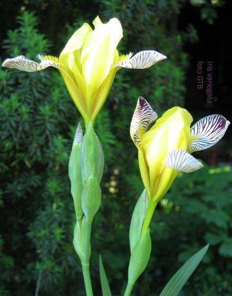 Laurins Variegata ist im weinviertel hin und wieder noch zu finden und ist eine Rückkreuzung aus Iris variegata x I. x sambucina (I. pallida x I. variegata) - ob sie einen Sortennamen hat weiß ich nicht.‘Berliner Tiger' ist Iris pseudacorus x 'Holden Clough' (I. pseudacorus x I. chrysographes), also keine wirkliche I. pseudacorus.