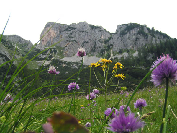 Heute auf der Wurzeralm. Im Hintergrund die 'Rote Wand', 1872 m hoch.