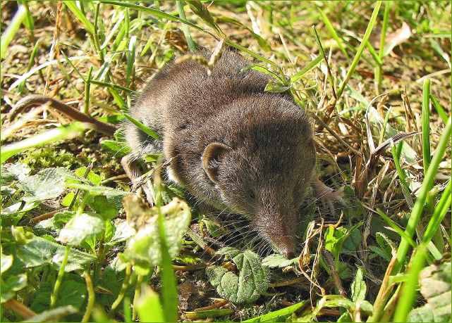 Spitzmaus (Jungtier).Die hat unser Gastkater, Herr Flöckli, offensichtlich noch nicht erspäht.