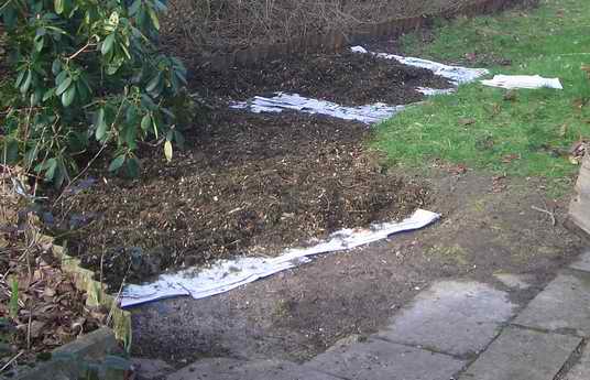 In Lilos Baupause schiebe ich mal ein etwas anderes Wegebaumodell.Im Winter bin ich auf einem gartenweg mit dem Auto eingesackt . Sah aus als hätte ich mir mit der Vorderachse Fischteiche gebuddelt. Ein Trecker hat mich rausgezogen sonst säße ich da heute noch. Mit dem Weg musste was passieren. Ich hatte soviel Fichte übrig und wollt eh mal probieren wie Zeitung im Garten wirkt. Also habe ich den Weg wieder einigermaßen glatt geklopft, Zeitung schuppig drauf ausgelegt und darauf kommt 5 cm Fichtenpürree. Es reicht gerade mal bis zur nächsten Wegkreuzung und im Übergang lasse die Zeitung weg um auch zu sehen wie Fichtenstreu mit dem Gras fertig wird.Im Vordergrund muss an den Terrassenplatten noch was gemacht werden, deshalb beibt das so lange noch offen.Ingeborg
