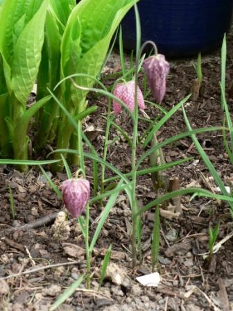 Schon 3 Jahre gedeihen Schachbrettblumen unter einer Hosta plantaginea 'Honey Bells'