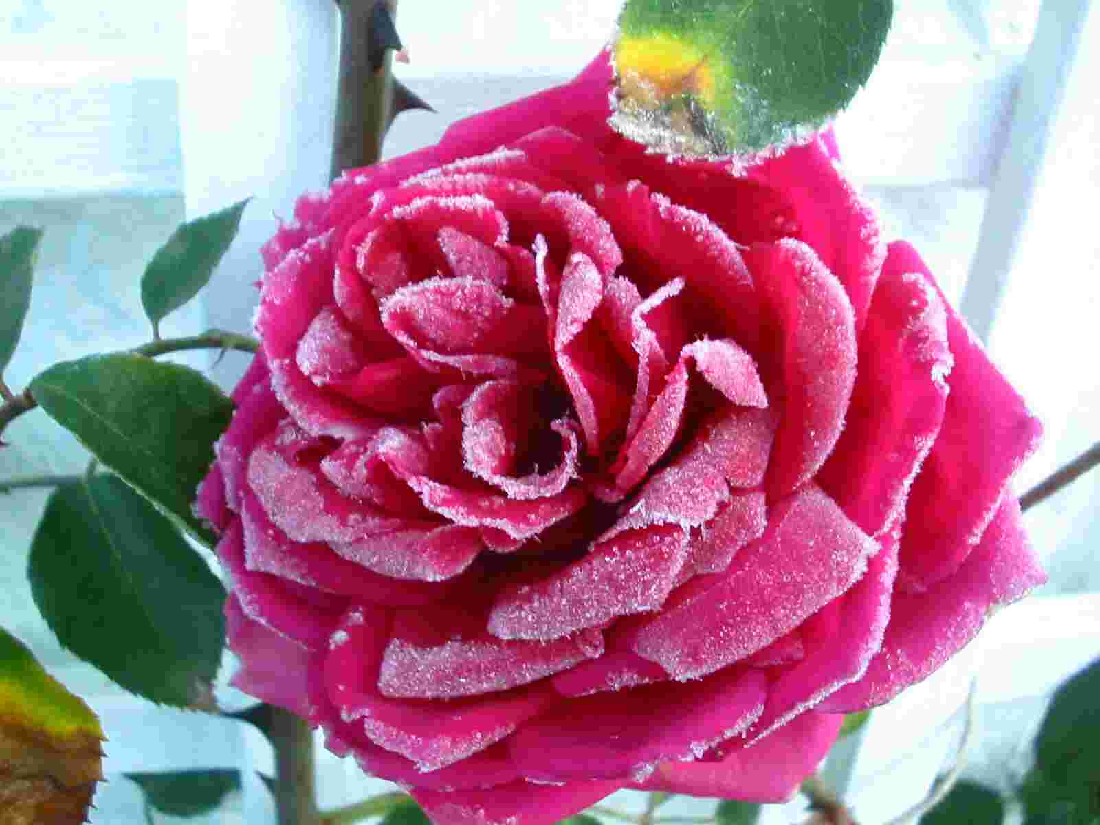 Bei uns im Garten blühten gestern noch die Teehybride 'Christoph Columbus' mit 2 offenen Blüten und die Strauchrose 'Sahara' die ihre letzte Blüte entfaltet hatte. Einige andere Rosensträucher haben noch Knospen. Ab Mittag schneite es dann, und alle Blüten waren mit Schnee bedeckt. Durch die milde Witterung blühen die Rosen in diesem Jahr länger.Unser bisheriger Rekord lag am 10.12.2003 mit einigen geöffneten Blüten von 'Lichtkönigin Lucia', der diesen Winter noch um 18 Tage übertroffen wurde.