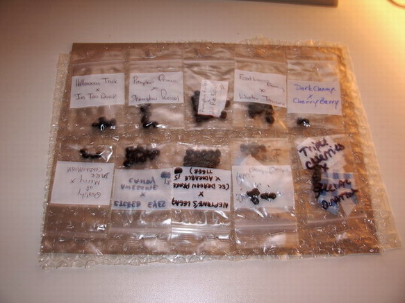 Samstag vor einer Woche habe ich 13 Kreuzungen einen Tag lang in Wassergläser gegeben. Davon war nur eine Kreuzung (11 Samen), bei der 7 untergegangen waren und 4 schwammen. Alle übrigen Kreuzungen hatten nur „Schwimmer“. In den 24 Stunden hat sich daran auch nichts geändert. Nach 7 Tagen hatten von dieser einen Kreuzung 10 Samen gekeimt. Der letzte (ein untergegangener) ist heute gekommen, d. h. 100 % Keimrate