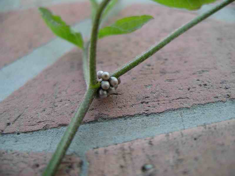 Wer kennt dieses Anhängsel: 1 mm im Durchmesser, silbern glänzend,zwar nicht auf Rosen sondern auf einem Clematiszweiglein