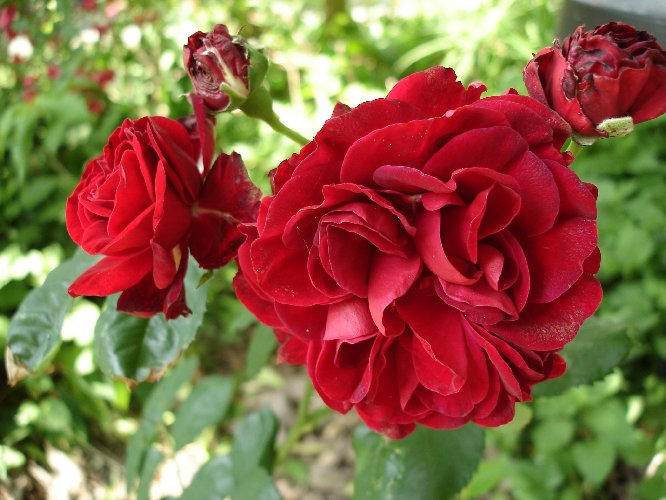 50 Jahre alte dunkelrote Rosenach 3 TagenBlüte und Knospen
