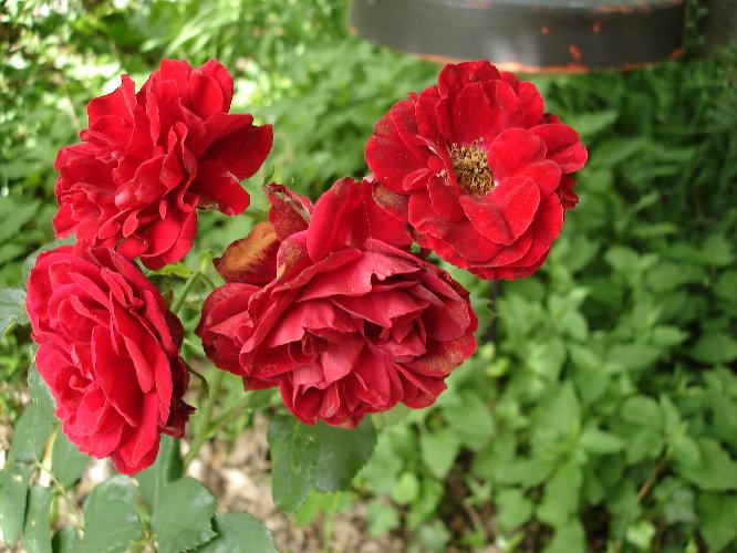 9. Tag, 4 geöffnete Blüten In der Mitte die jetzt seit über 10 Tagen geöffnete erste Blüte mit den viergeteilten Petalen. Die Blüten dieses 50-jährigen Rosenstocks erweisen sich als sehr wetterfest!Jetzt hoffe ich, dass vielleicht zufällig noch jemand dieselbe Rose in seinem Garten hat, die Rose erkennt und den Sortennamen dieses robusten Stocks kennt. LG und im Voraus vielen Dank für Eure MithilfeGerardo
