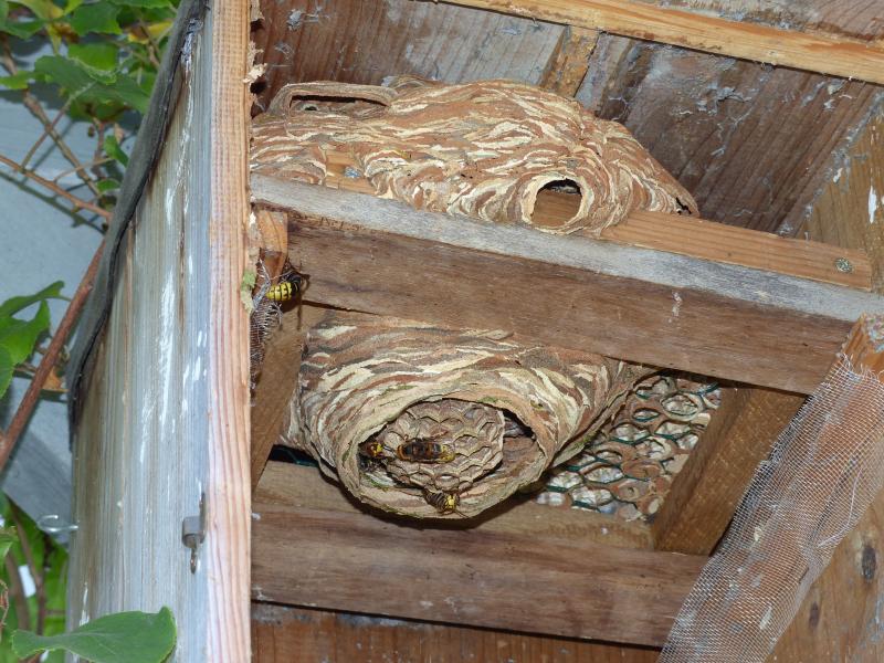 Bei einem Nest der Gemeinen oder Deutschen Wespe käme gleich ein ganzer Trupp. :o