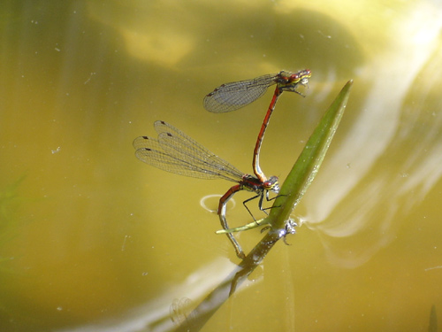 Jeden Tag gibt es etwas Neues zu entdecken. Das Teichleben ist faszinierend.Heute konnte ich ein Adonislibellenpärchen bei der Eiablage an dem gerade spriessenden Pfeilkraut beobachten.