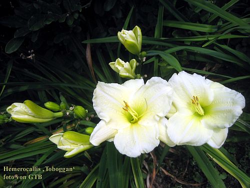 Ich wollte, ich hätte jetzt auch mehr spätblühende Taglilien im Garten. Es ist wirklich bedauerlich, dass die Tagliliensaison schon fast wieder vorbei ist.Meine einzige, richtig spät blühende Taglilie ist ‚Flamboyant Show’. Leider sind im letzten Jahr die Wühlmäuse über sie hergefallen, so dass sie jetzt zwar üppiges Laub, aber nur einen Blütenstängel hat. Deshalb musste ich auch ein Bild aus früheren Jahren nehmen.@Hempassion,hättest du vielleicht ein Bild von der ‚Final Touch’? Da wirst du ja im nächsten Jahr viele Taglilien-Sämlinge haben, wenn deine Tante so fleißig Bienchen gespielt hat.@alle,ich habe heute gerade von einer Taglilie vier schöne, rabenschwarze und glänzende Samen geerntet. Kann ich die eigentlich schon jetzt aussähen, oder sollte ich besser bis zum Frühjahr warten? Ich würde die Sämlinge dann über Winter auf den kalten, aber sehr hellen Dachboden stellen. Irgendjemand hat mir erzählt, dass die Samen erst ein paar Wochen mit feuchter Erde in den Kühlschrank gestellt werden sollten, damit sie besser keimen. Ist das wirklich erforderlich?Viele liebe GrüßeElke