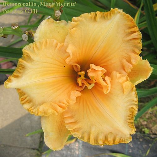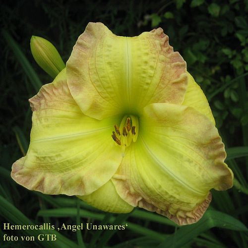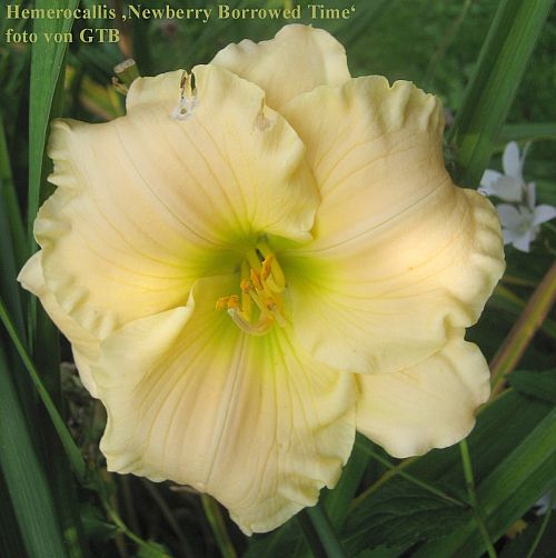 Eine letzte hübsche Blüte - wenn auch kleiner als sonst -hatte heute'Newberry Borrowed Time', die letztes Jahr den Waterman Award von Hemerocallis Europa erhielt.Na ja, hab gerade gesehen, dass sich eine Schnecke wohl schon etwas an der Blüte verlustiert hatte.