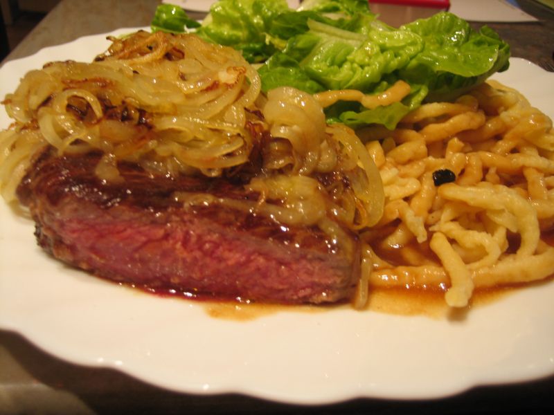 Heute auch wieder mal ein Bild, es gab Rostbraten mit Spätzle und Salat!Halt schwäbisch