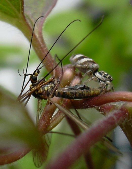 Die Brackwespe, die eigentlich lieber Rauben vom Kohlweissling hätte, wurde kurz darauf zum Opfer..