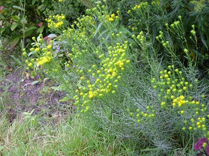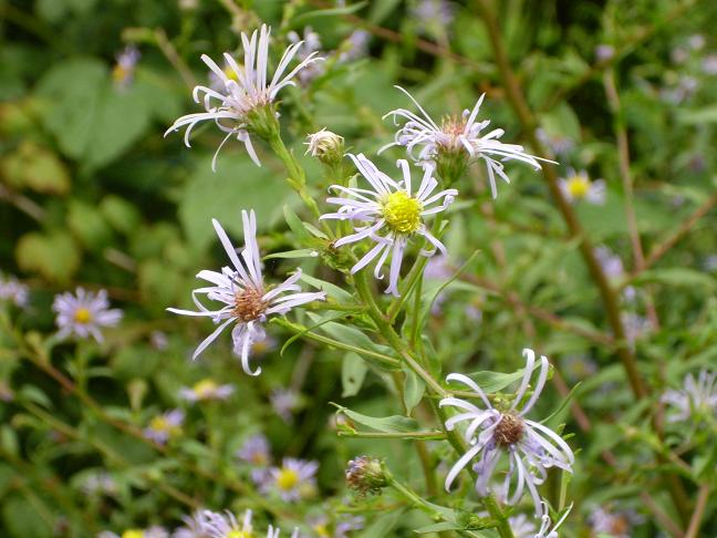Aster pyrenaeus 'Lutetia', habe leider kein besseres Foto hinbekommen (die Triebe sind dieses Jahr auseinandergefallen und alles andere als standfest).