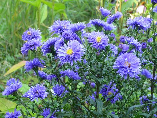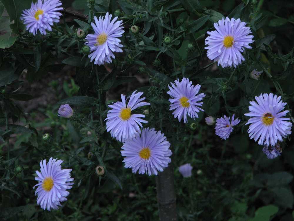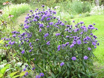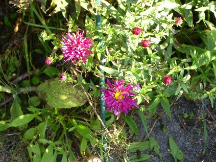 und die ersten Blüten von Aster novi-belgii 'W.Churchill', noch ein wenig mickerig.