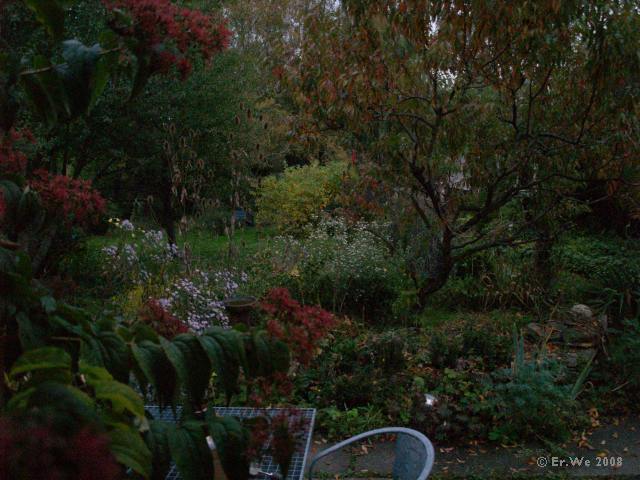 ) einige einstellungen zu checken und optimieren. Ich bin schon immer sehr gerne zur dämmerungszeit draussen, und fotografiere dann auch sehr gerne. Also oft mit wenig available light. Als weiteres problem kommt oft der wind dazu.Hier 2 belichtungsvarianten einer abendstimmung, ziel ist einen grösseren zusammenhang festzuhalten, für beide gilt:aufgenommen um 2008-10-14, 17:20 sommerzeitF 3.5Focal length: 14mmISO 1600Metering: multi-segmentKamera am türrahmen abgestützt.Hier die version mit ¼ sec belichtungszeit.
