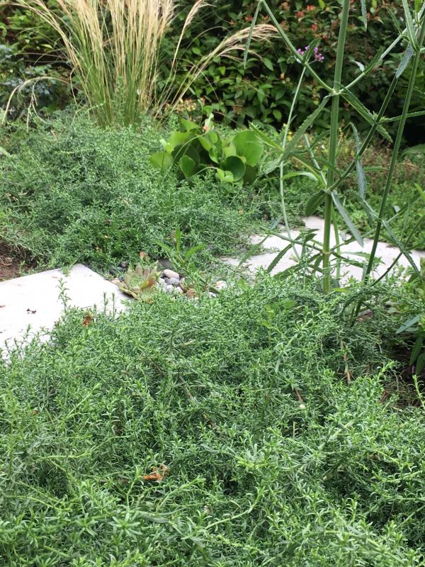 Hier zeigen die ersten Astern schon Farbe, allerdings bin ich noch nicht dazu gekommen, sie abzulichten. Aster ageratoides 'Asran' ist trotz extremer Sommertrockenheit üppig gewachsen (mehr Wasser wäre da wohl auch kontraproduktiv...) und öffnet die ersten Blüten, und zwei namenlose vom Discounter in blau und weiß (ausgezeichnet als Kissenaster, wobei die eine tatsächlich nur ca. 30 cm hoch ist, die andere dieses Jahr gut doppelt so viel) sind ebenfalls schon soweit. So eine 'Snowflurry' hätte ich auch gerne. :)