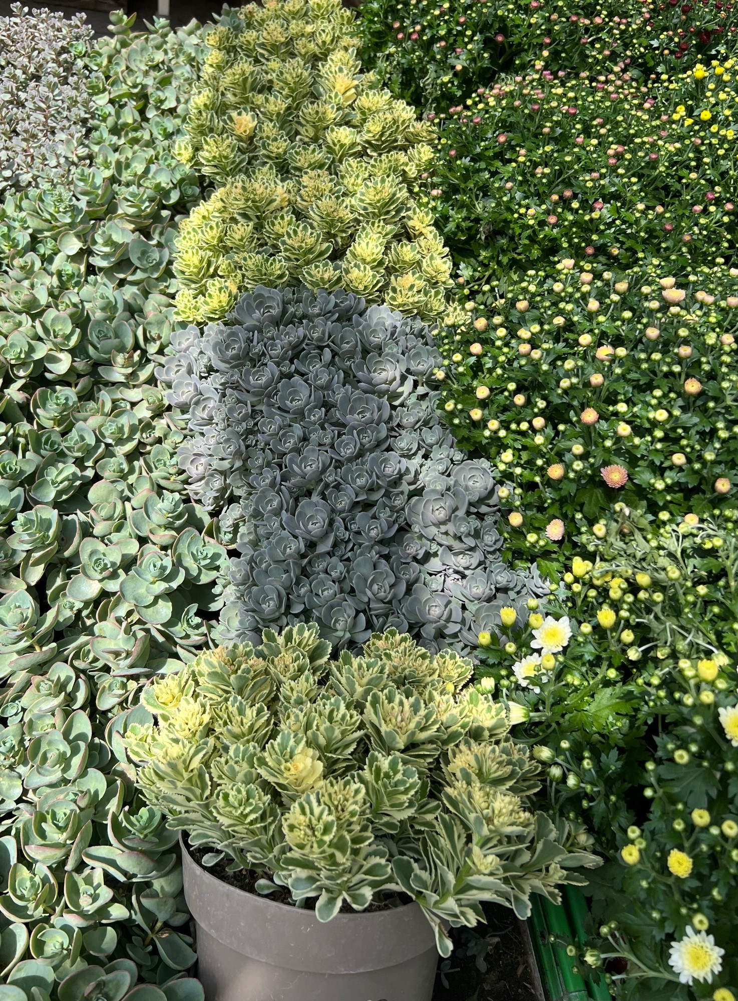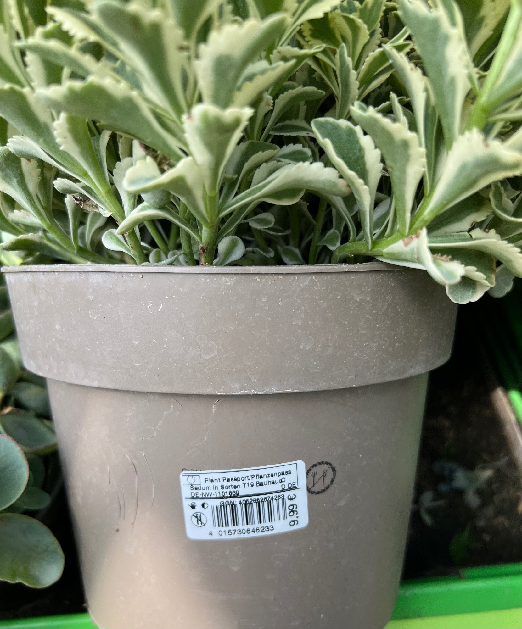 Das dürfte Sedum 'Atlantis' sein, blüht gelb, aber der eigentliche Hit ist das Laub. 10 EUR ist jedenfalls krass teuer, im Jawoll gibt's das für weniger als die Hälfte.