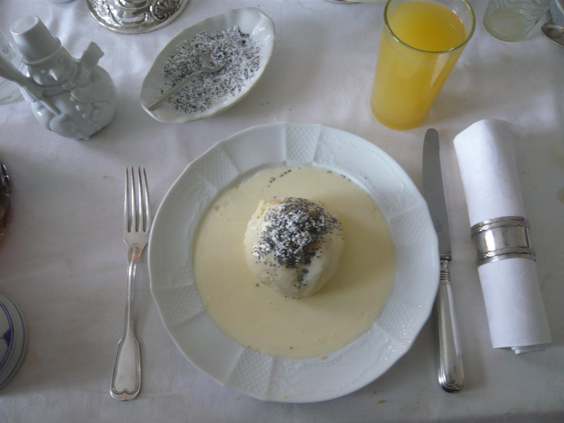 wir haben im dezember auf dem weihnachtsmarkt in dresden-loschwitz hefeklöße gegessen. das fand ich mal eine gute idee. es gab klöße und man konnte unter verschiedenen beilagen und zutaten wählen. gg hatte das, was auf crispas "kinderteller" liegt.dein tisch ist wunderschön, crispa! klassisch und simpel und mit einem kleinen schneemann als deko - sehr fein!