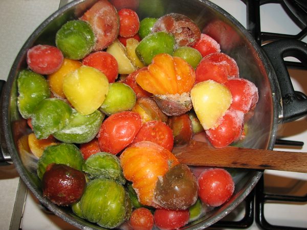 Das waren die letzten Mohikaner vom Spätherbst. Ich hatte keine Lust Soße zu kochen, also hab ich sie einfach eingefroren und mache eben die Soße nun erst.