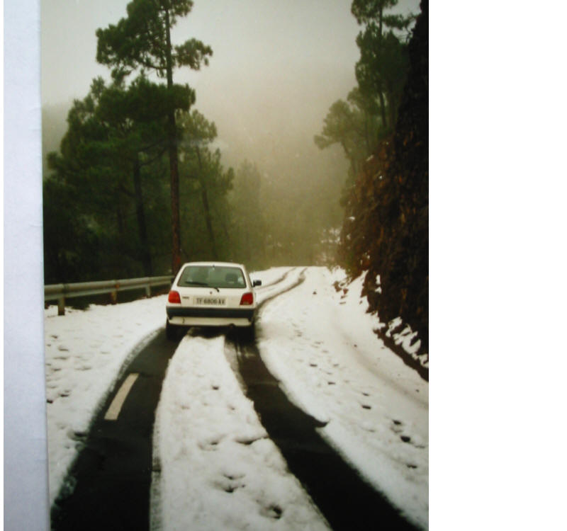 Wir haben die Inselheilige, die virgen de los nieves im Januar 1994 auch kennenlernen dürfen. Das zwischenzeitlich in höheren Lagen wirklich tiefwinterliche Wetter war ein faszinierender Kontrast zur üppigen Vegetation weiter unten in Küstennähe. Die Palmeros können übrigens auch Schneemänner bauen