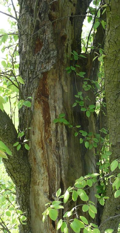sondern, dass er es tut, obwohl sein Stamm nur noch ein schmales, hohles Fragment ist.