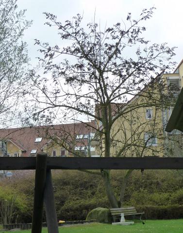 nun der Baum aus dem Schwimmbad, der so gewachsen ist in den letzten Jahren. (Der andere zuvor gezeigt ist bestimmt auch so gewachsen, denn es kann nicht mehr als 10 Jahre her sein, daß er gepflanzt wurde. Bei dem weiß ich nur nicht, wie er früher ausgesehen hat.)