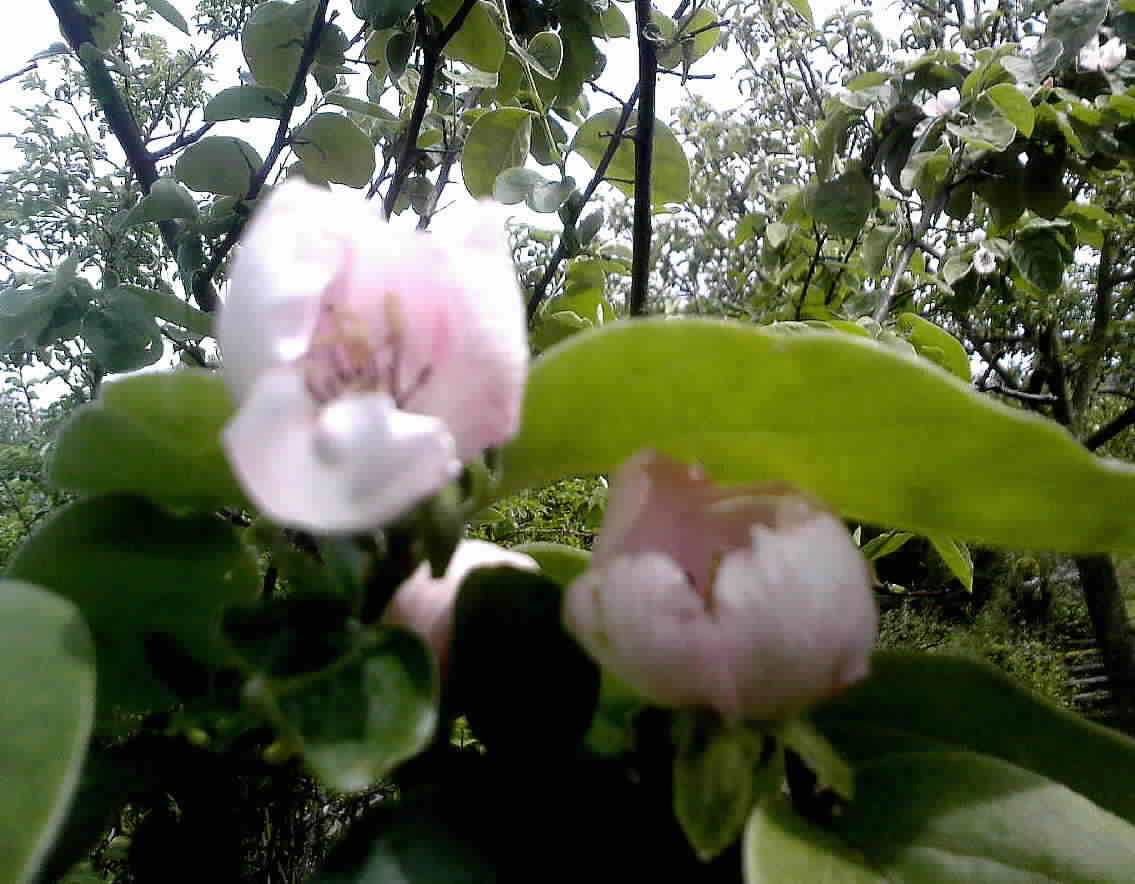 Bei mir gibts dieses Jahr leider nur Apfelquitten, meine Birnenquitte hat frostbedingt nicht geblüht(wie auch Süßkirsche, Pflaume, Kiwi). Auch ist die dieses Jahr die Bestäubungsrate recht mager trotz bestem Wetter, es fehlen einfach Hummeln und Bienen.Aber trotzdem einige tolle Blüten.