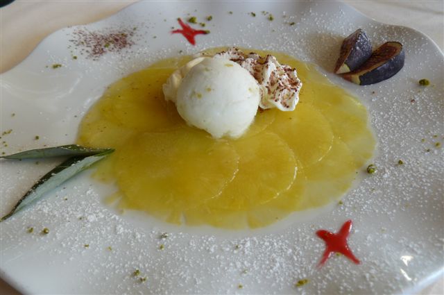 danach ein Ananas-Carpaccio mit Zitronensorbet, das hat nicht wirklich zusammen gepasst