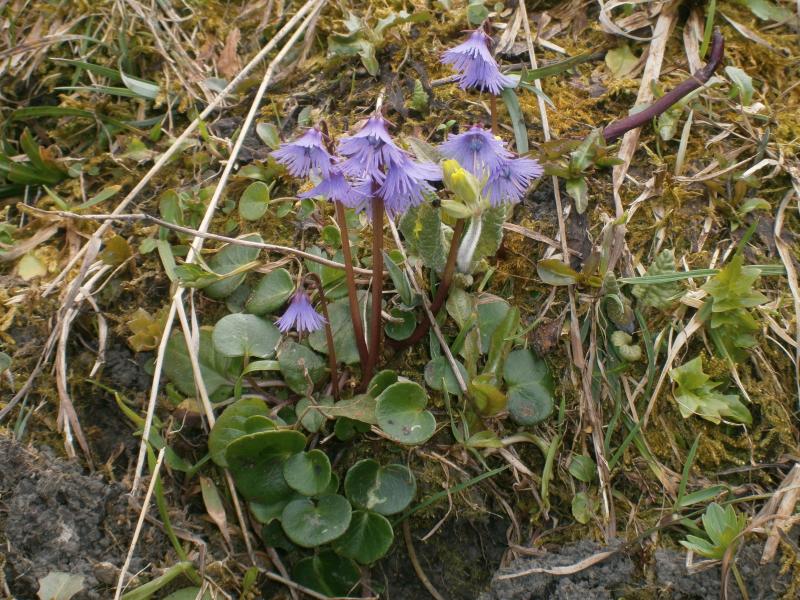 Mein Soldanella ?montana/hungarica? blüht dieses Jahr, wenn auch nur mit 2 Blütchen, eine ist schon ab, nachdem es letztes Jahr ins Anwachsen investierte
