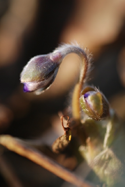 der Schnee ist jetzt über den meisten Leberblümchen geschmolzen, aber der Boden gefroren. Einige sehen schon sehr verheißungsvoll geschwollen aus und manche haben sogar noch grüne Blätter.