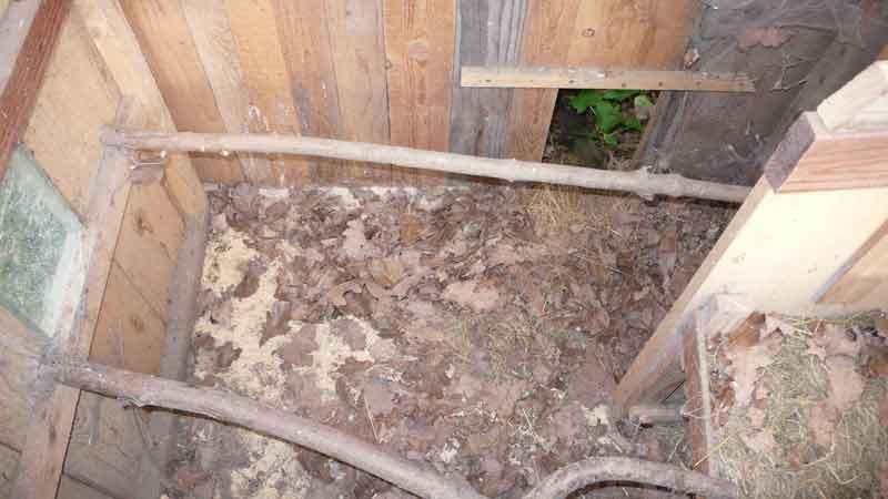 luftbild der sitzstangen mit dem ausgang in die voliere:die "türen" sind nach unten zu klappen