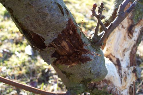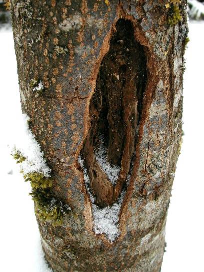 tja das war der blitz re-mark da sieht es ganz anders aus ! und ganz so tief ist es auch nicht 2-3cm ...da ja das bäumchen der stamm dort selbst etwa ~ 10cm nur hat !ich muss aber noch li+re und unten paar zentimeter sauber wegschneiden muss ich aber verschieben weil bei uns momentan tiefer winter ist :oich habe es wie iris sagte eingebunden das es mal trocknen kann !und vorher noch schnell ein foto gemacht :-) ohne blitzda kannst du es noch besser sehn (hoffe ich *g*) weil schnee drinnen liegt ::)mfgMaroniPs: habe dir mal beim editieren geholfenAuf den ersten Bildern sah es für mich so aus, als ob die Höhlung mindestens 5 cm tief gehen würde, auf dem aktuellenBild scheint mir das ganze viel flacher. Jetzt erkenne ich auch eher, was Bernhard mit 'Überwallung' gemeint hat (obwohl ich mir da nicht sicher wäre), vorher habe ich eigentlich nur eine sehr tiefe Höhlung mit ein paar Stegen gesehen. Auch die Farbe wirkt nicht mehr ganz so schwarz. Was doch eine andere Ausleuchtung bewirken kann...